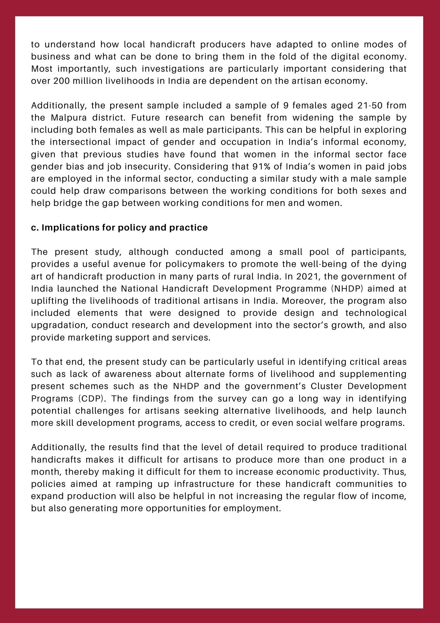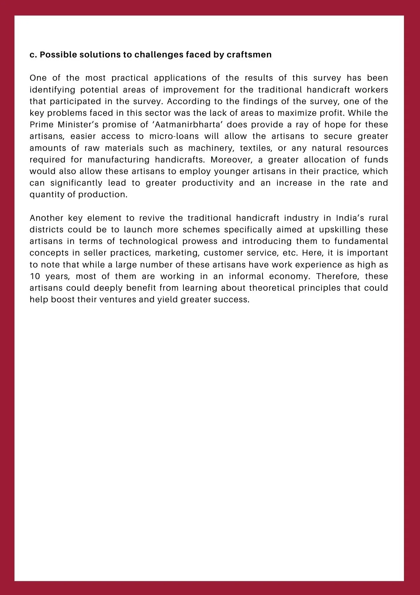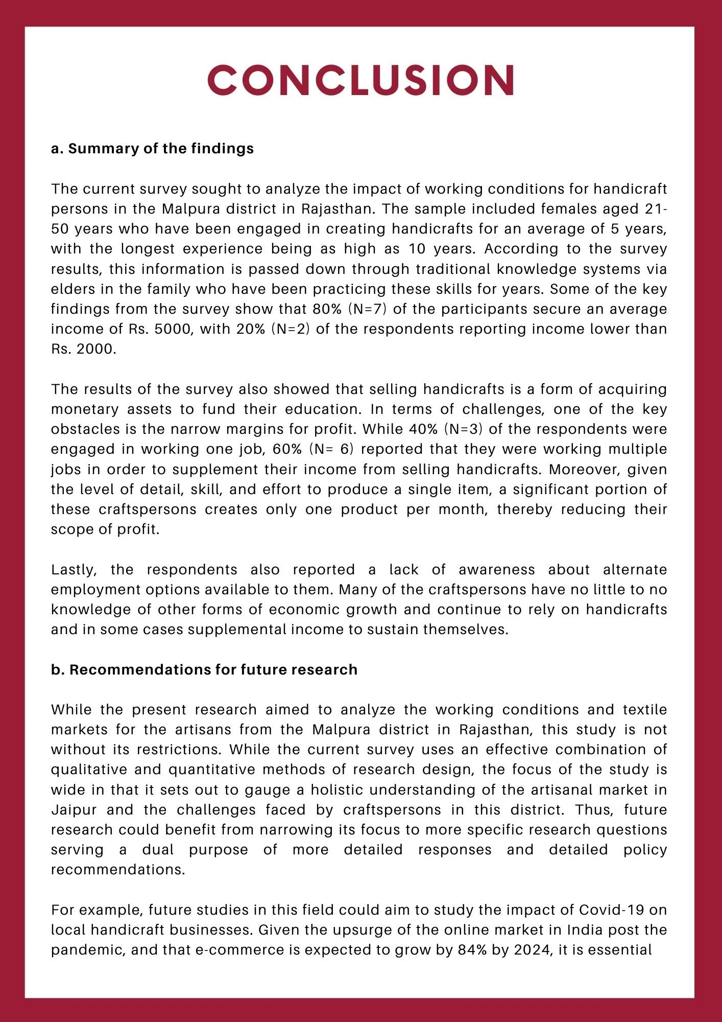 Driven by the intention to gather more information on the status of the contemporary handicrafts market in Jaipur, we worked on developing a unique survey in partnership with the Jaipur Rugs Foundation. This survey was distributed to artisans in Rajasthan in order to gather details on the lived experiences of selling handicrafts, as well as the trade cycle, profitability, product sourcing, market growth, and finally the challenges afflicting these communities. The purpose of this exercise was to establish a fertile database through which we have authored a comprehensive report based on these surveys for further educational awareness.